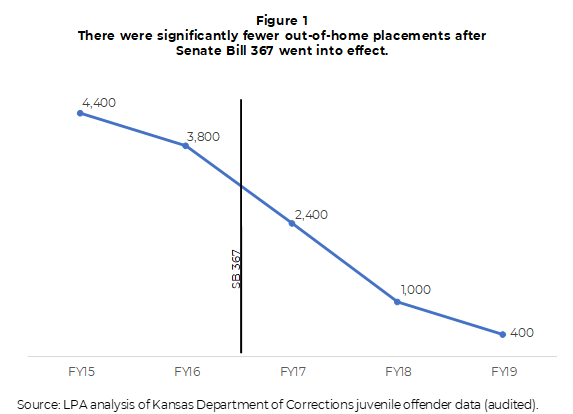 Senate Bill 367 reforms reduced out-of-home placements and increased community program funding for juvenile offenders in Kansas.
