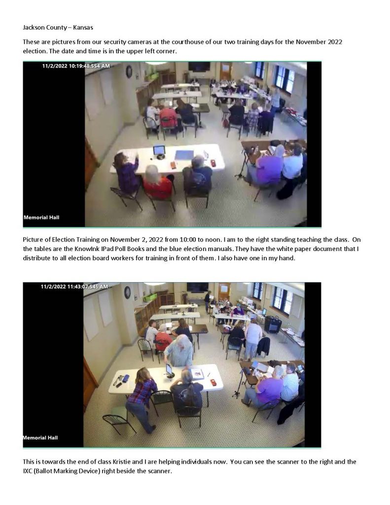- Harvey, Riley, and Wyandotte counties provided documentation showing they trained all their 2022 general election workers immediately before this election.