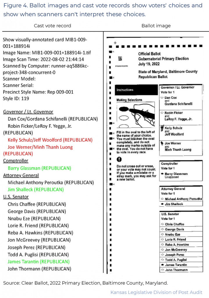 - Figure 4 shows parts of both a ballot image (on the right) and the related cast vote record (on the left).