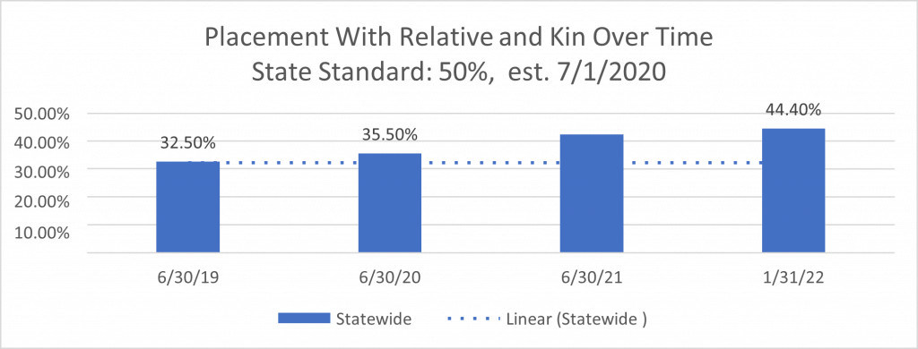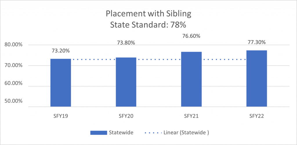 - Not meeting these standards does not mean that children are unsafe, or that they are not in the most appropriate placements. But, performance on them may indicate process or capacity issues. Performance on these standards can also indicate child well-being while in foster care. For example, if a child can’t be placed with a relative or kinship placement, keeping a child in their own school while in foster care can help them stay connected to their community and family and reduce the overall trauma of separation from their family.